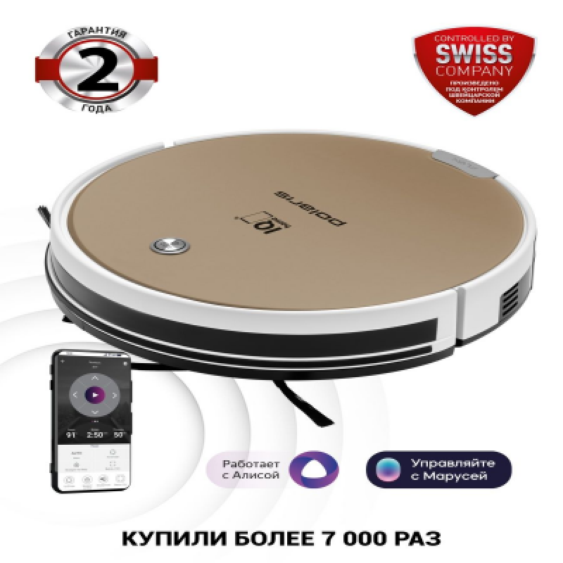 **Wi-Fi УПРАВЛЕНИЕ: Управление из любой точки мира через приложение в телефоне; Неограниченное количество пользователей; Без дополнительного оборудования. ВОЗМОЖНОСТИ: Построение маршрута уборки; Расписание уборки; Сухая и влажная автоматическая уборка; Время работы: до 150 минут. БЕЗОПАСНОСТЬ: Возможность установить права администратора; Многоуровневая защита данных.** Работает с Марусей и Алисой. Полностью автоматическая уборка. Расписание уборки: часы, дни. Функция "Найди меня". Кнопка включения на корпусе. Максимальная мощность прибора: 25 Вт.