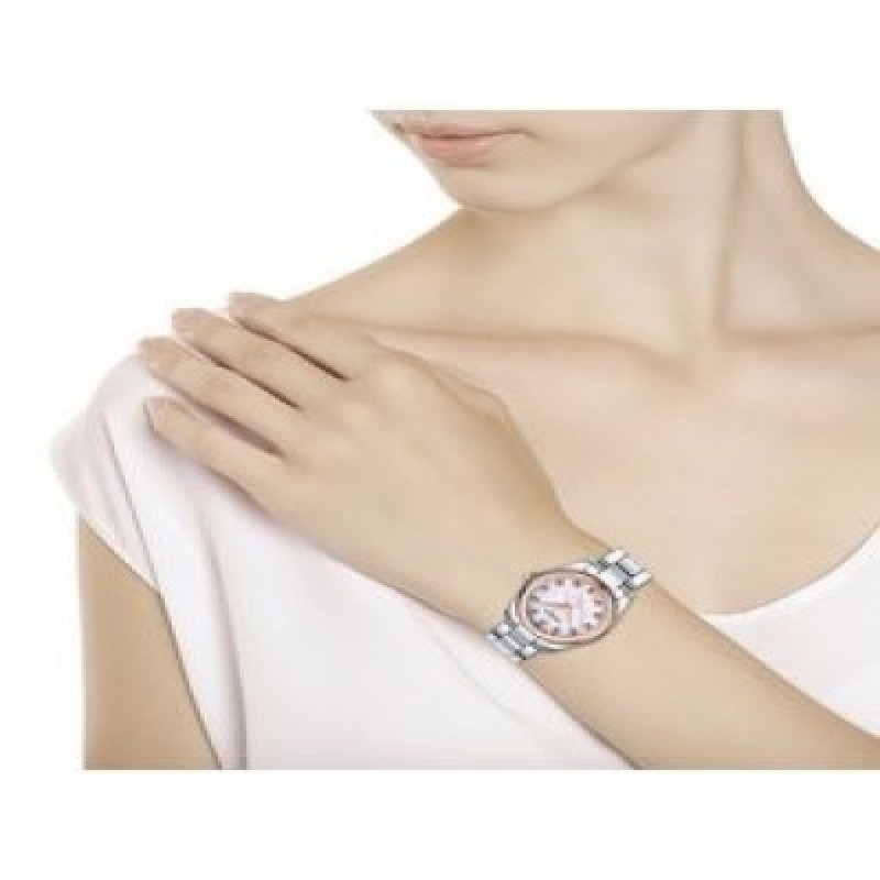 Часы ювелирные наручные женские из золота и стали коллекция Unity for her. Корпус нержавеющая гипоаллергенная сталь 316L, безель розовое золото 585 пробы, задняя крышка сталь 316L, кварцевый швейцарский механизм Ronda 763, стекло сапфировое, браслет сталь 316L. Диаметр корпуса 31 мм, ширина браслета 16 мм. Водонепроницаемость 5 АТМ. Вставки на циферблате бриллианты: 1,1 мм - 12 шт, 0,097 карат. Гарантия 3 года с момента покупки.