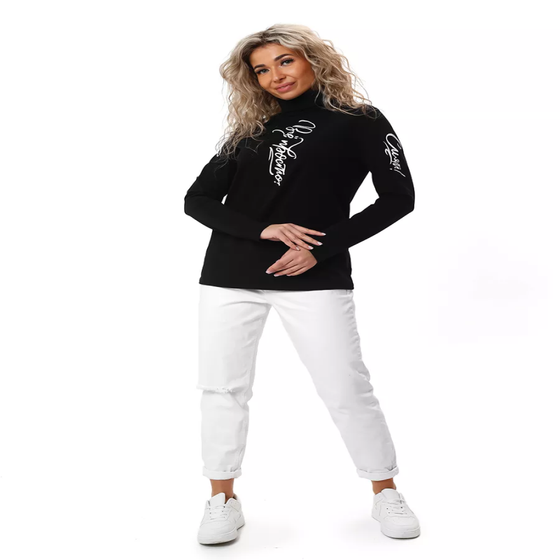 Стильная водолазка из ткани кулирка с лайкрой Fircha - имеет эффект бархата, за счёт чего она очень мягкая, приятная к телу и на ощупь. Такая вещь в вашем гардеробе станет любимой. Она отлично сочетает в себе все преимущества свитшота, джемпера, лонгслива и кофты. Идеальный фасон, длинный рукав в совокупности с воротником стойкой превосходно подойдет для любого события. Все дизайнеры мира сходятся во мнении, что воротник стойка подчеркнёт в образе женственность и элегантность. Именно поэтому мы использовали такой стиль при создании данной модели. И наши клиенты подтверждают, что мы не ошиблись с выбором. Надев водолазку с принтом под пиджак или жакет, Вы создадите образ деловой и стильной девушки. А если Вы решите надеть его с джинсами и кроссовками и отправиться на прогулку, то получится образ утончённый и романтичный. Можно купить водолазки и белого, и чёрного цвета с принтами от наших дизайнеров. Каждый из них по-своему хорош. Стильный принт дополнит Ваш образ. Мягкая хлопковая ткань водолазки не нарушает воздухообмен, поэтому в ней тепло, когда на улице мороз и комфортно в жарком помещении. Добавление небольшого количества лайкры продлевает изделию жизнь и позволяет сохранять идеальную форму.