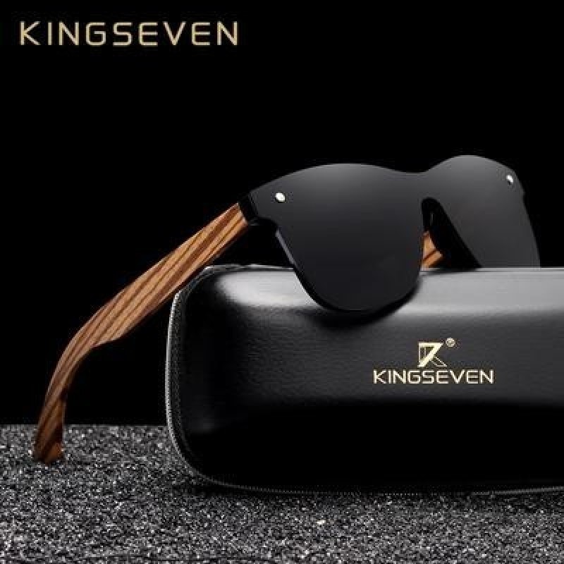 KINGSEVEN Поляризованные квадратные солнцезащитные очки Мужчины Женщины Зебра Деревянная оправа Зерк