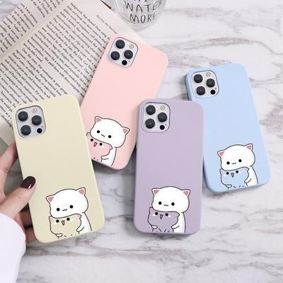 Симпатичный мультяшный кот пара Чехол для телефона для iPhone 13 12 11 Pro Max X XR Xiaomi Redmi Not