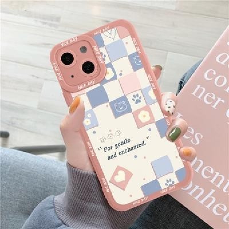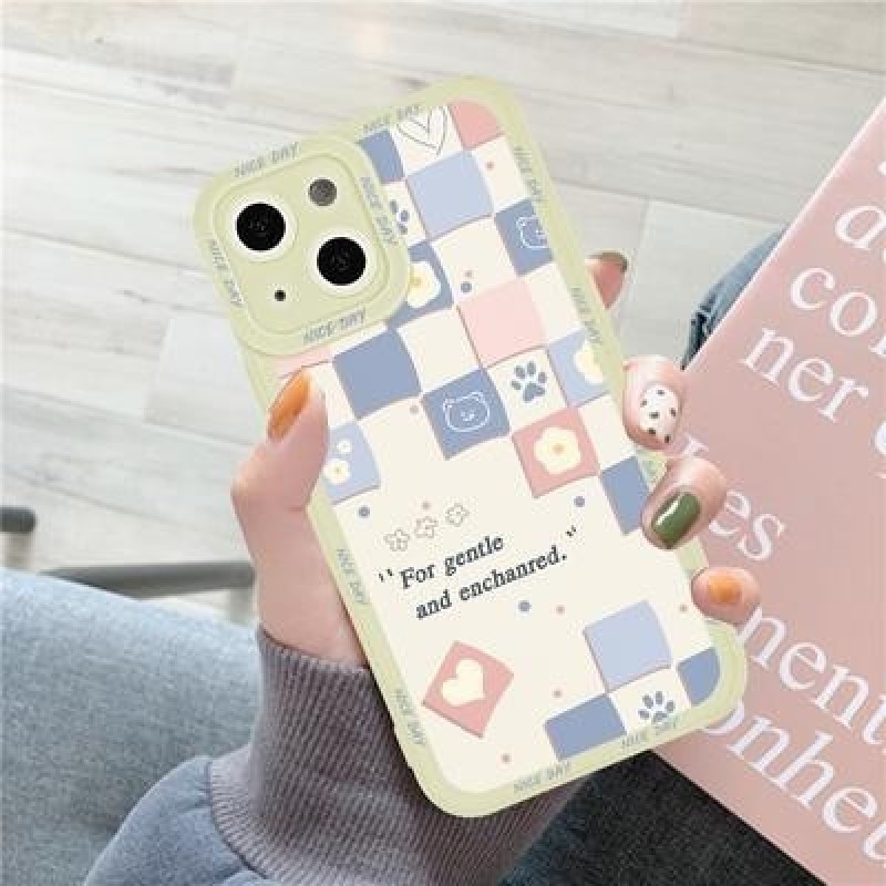 Квадрат сетка Медведь Кошачий чехол для iPhone 14 13 12 11 Pro Max Samsung Galaxy A53 A32 A52 S22 A5
