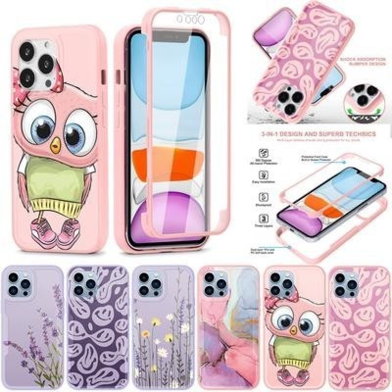 360 градусов Полный ударопрочный Сова Цветок Чехол для телефона для iPhone 13 12 11 Pro Max Xiaomi 1