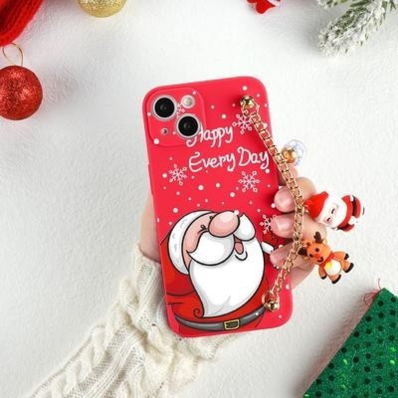 Мультфильм Санта Рождественский подарок 3D Кукла Цепочка Телефон Чехол для iPhone 13 12 11 Pro Max S