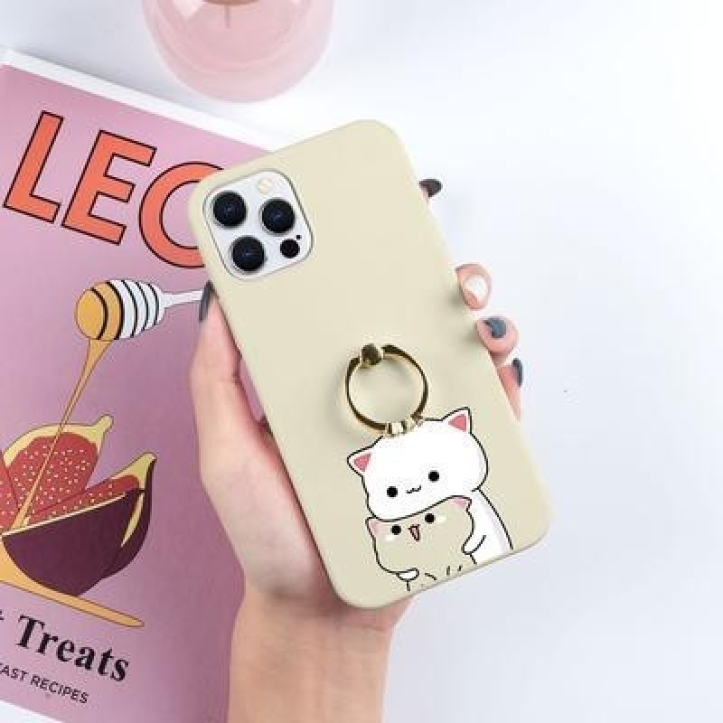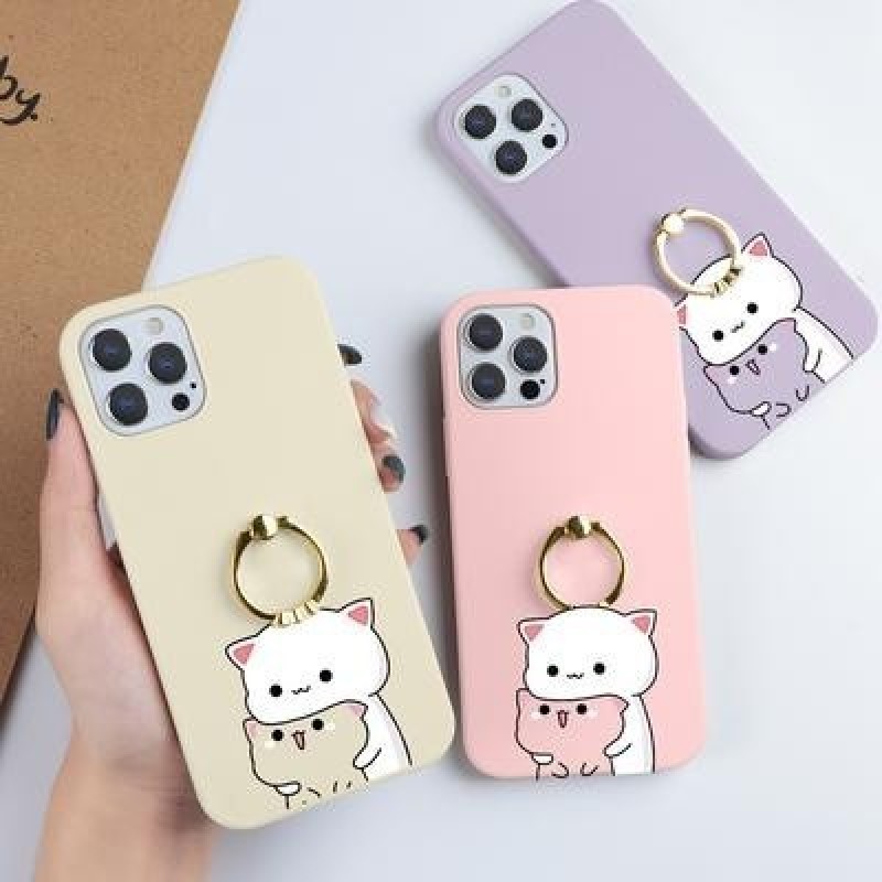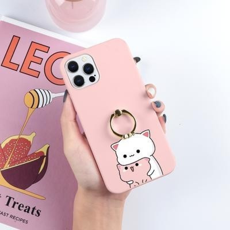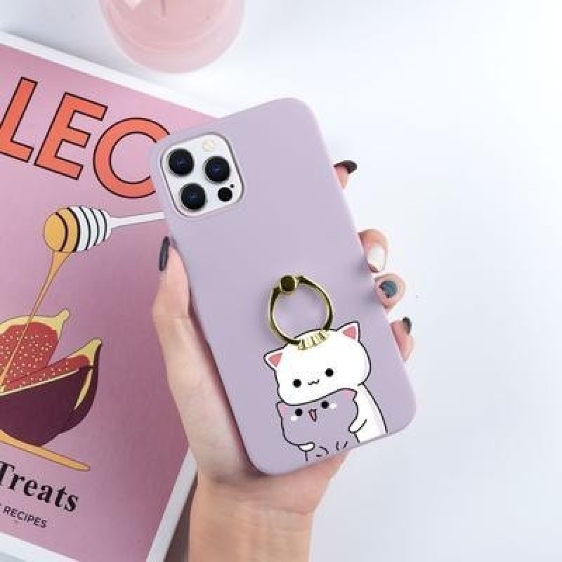 Симпатичный кошка палец кольцо чехол для телефона для iPhone 12 11 Pro Max 8 7 6 Plus X X XR XS Max
