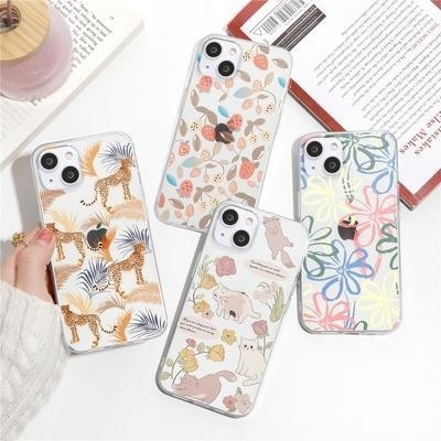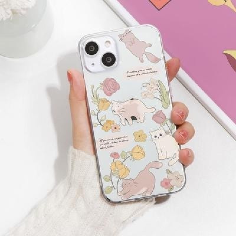 Арт Линия Цветок Симпатичный Кот Прозрачный Чехол для телефона для iPhone 14 Plus 13 12 11 X XR XS S