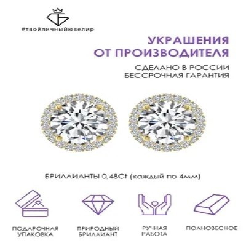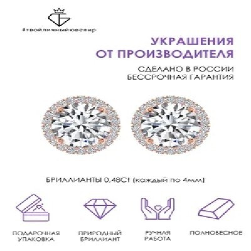 Золотые пусеты - гвоздики  с бриллиантами бренда ТВОЙЛИЧНЫЙЮВЕЛИР наполнены мощной энергетикой - подойдут для девушек и женщин, которые выбирают яркость и эффектность. Роскошное и в то же время лаконичное ювелирное украшение, выполненное из розового золота 585 пробы, подчеркнет Вашу неповторимость и откроет новые возможности для стильных экспериментов. В качестве вставки в серьгах используются бриллианты, способные на свету переливаться всеми цветами радуги и издавать невероятный блеск, придавая своей обладательнице женственность и элегантность. Дизайнерские сережки пусеты, выполненные опытными ювелирами России, оснащены удобной и надежной винтовой застежкой, которая обеспечивает прочную фиксацию ювелирного изделия на Вашем ушке. Тип конструкции делает золотые серьги самыми удобными - они не мешают одеваться, не цепляют волосы и, при правильном подборе размера, не доставляют дискомфорта во время сна. Именно по этой причине серьги из золота часто выбирают не только для взрослых девушек, но и для маленьких модниц. Благодаря минималистичному, продуманному дизайну серьги-гвоздики можно легко сочетать с любыми другими украшениями и нарядами. Такие пусеты из золота никогда не выйдут из моды и всегда будут актуальны. Сережки-гвоздики – одни из самых популярных моделей, они универсальны, и их легко подобрать под любой типаж и образ, стиль одежды, возраст владелицы. Аккуратные и практичные пусеты с бриллиантом - это универсальное украшение для любого образа:  на деловой встрече в комбинации со строгим офисным нарядом, на романтическом свидании, и даже на роскошном приеме. Небольшой размер сережек подчеркивает женственность владелицы и ее элегантность при любых обстоятельствах. Бриллиантовые пусеты идут всем без исключения: блондинкам и брюнеткам, смуглым и светлокожим девушкам, голубоглазым и кареглазым. Если вы хотите быть в центре внимания или же ищете украшение на торжественное мероприятие, то серьги с драгоценными камнями — это ваш вариант! Пусеты поставляются в брендированной упаковке и идеально подходят в качестве замечательного подарка на особую дату или просто так, чтобы восхитить и удивить любимую жену, маму или дочку и оставить неизгладимое впечатление. Купив ювелирные изделия от производителя ручной работы, вы получаете бессрочную гарантию! С любовью и заботой о Вас, ТВОЙЛИЧНЫЙЮВЕЛИР!