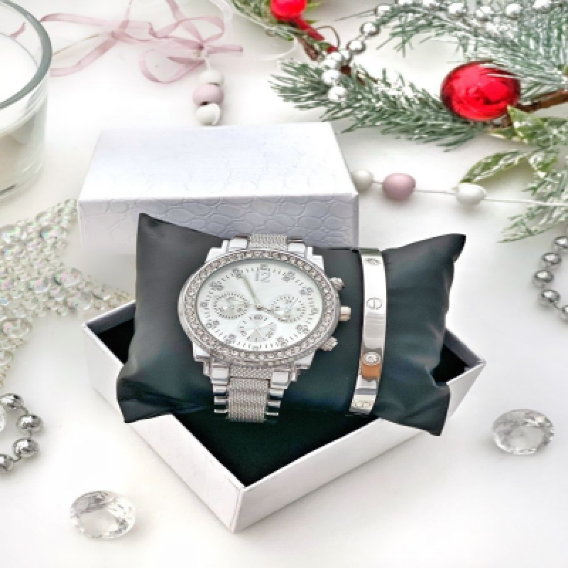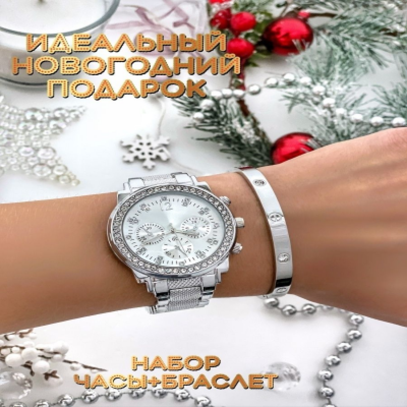 Эта модель - несравненно Хит продаж! Женские наручные часы без логотипа бренда. Модный , современный дизайн. Стильный браслет в подарок. По окружности циферблата и внутри декорированы качественными камнями. Металлический ремешок регулируется, лишние звенья снимаются под ваш размер запястья. Качественный кварцевый механизм на батарейке. Элемент питания установлен. Класс влагозащищённости WR20 (защита только от брызг). Корпус часов и браслета выполнен из качественного материала- нержавеющая сталь, при носке покрытие не стирается ,не темнеет. Хронограф (маленькие циферблаты) - декор (не рабочие). Максимальный размер по обхвату - 20 см. Диаметр корпуса - 40мм. В комлекте браслет, его максимальный размер 19. Вес - 110г. Состав комплекта: часы,браслет, инструкция, коробка . Идеальный комплект как для себя, так и для подарка подруге, сестре, маме. Не пропустите акцию приобрести топовый комплект по низкой цене! Развернуть описание