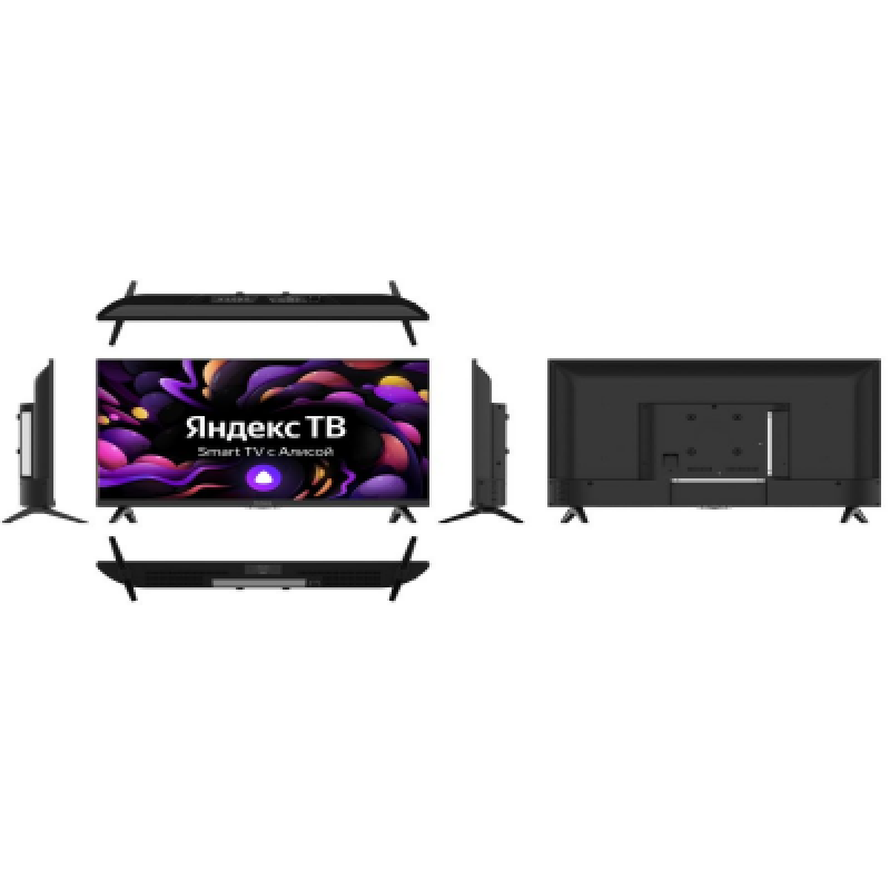 Телевизор ЖК с функцией СМАРТ ТВ с Yandex-платформой; 4-х ядерный мощный СМАРТ процессор; голосовой ассистент Алиса; поддержка DRM; Супертонкая фронтальная рамка; DVB-S2/S/T2/DVB-T/DVB-C тюнер; USB MKV плеер; поддержка CI+, H.265 (HEVC) и Dolby Digital+; тонкий корпус с оптической глубиной 20мм. Телевизор идет в комплекте с подпиской на сервис ОККО на 6 месяцев.