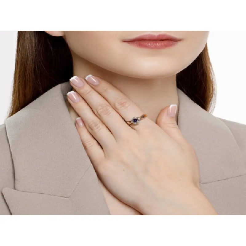 Женское золотое кольцо с бриллиантами и танзанитом. Стильное дизайнерское кольцо отлично подходят для повседневной носки, а также эффектно дополнят нарядный, вечерний, праздничный или свадебный образ. Современные ювелирные изделия легко сочетаются с любой одеждой. Украшения SOKOLOV (Соколов) приходят в комплекте с подарочной упаковкой, идеально подходят для подарка любимой женщине, девушке, девочке на День рождения, Новый год, 8 марта, день всех влюбленных (14 февраля) или любой праздник, и повод. Значение веса на фото и в характеристиках являются примерными и могут отличаться от фактического. Изделие выполнено из красного золота 585 пробы; Вставка: бриллиант, танзанит; Характеристики: 6 Бр Круг 57 0, 129 3/6 А, 1 Танзанит Круг 5, 00.