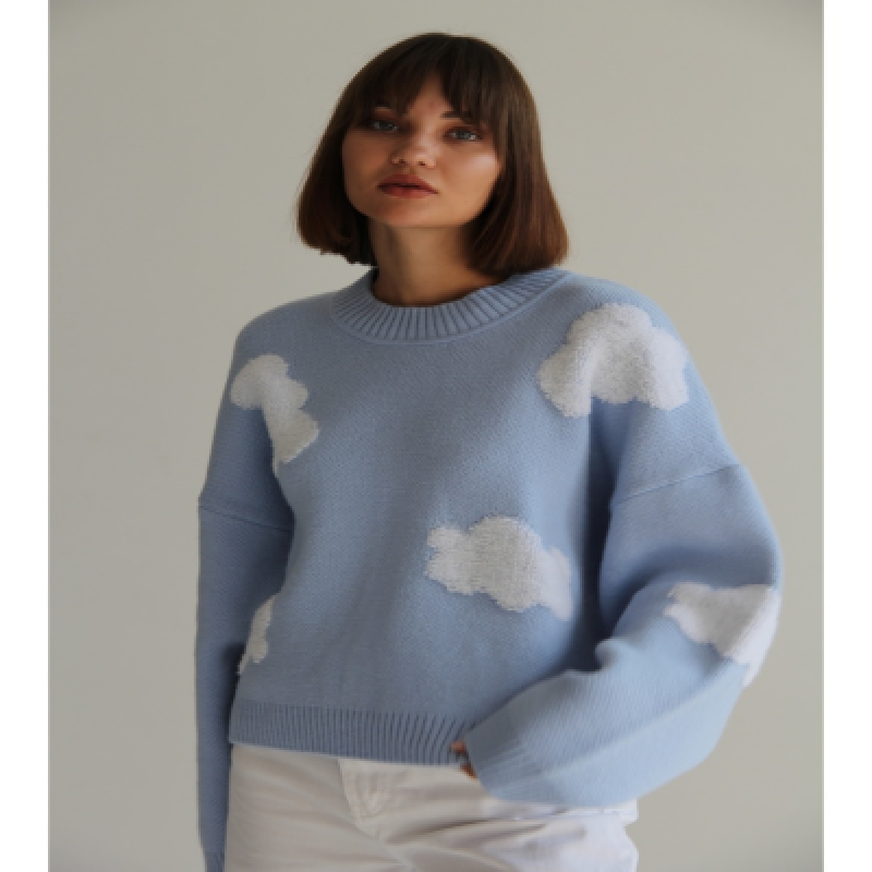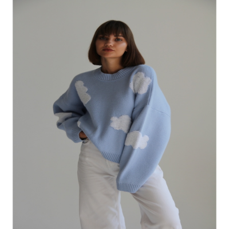Свитер универсальная вещь. Свитер оверсайз идеально вписывается в офисный, повседневный и вечерний стиль. Повседневный джемпер женский сделает ваш образ необычным и уникальным. Объемный базовый свитер с модным принтом Облака. Теплый шерстяной женский свитер отлично согреет вас в зимний период и весной. Изделие не теряет форму в течение долговременной носки и стирок. Джемпер прямого кроя имеет универсальный размер, прекрасно смотрится на всех типах фигур и является неотъемлемой часть гардероба.