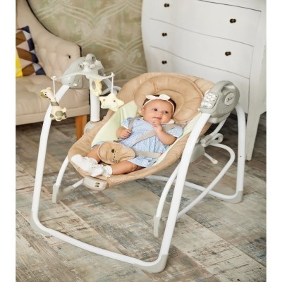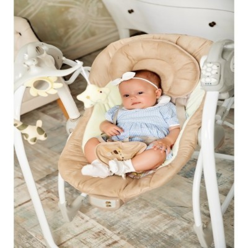 ЛУЧШИЙ МАМИН ПОМОЩНИК - Flappy новая модель электрокачелей с ВИБРАЦИЕЙ для самых маленьких от 0 месяцев. Конструкцию качелей отличает простота и компактность, что открывает широкие возможности для перевозки изделия и создания малышу уютной, домашней обстановки в любом месте. Электро-качели 2 в 1 это и качели и шезлонг. Для максимально комфортного удобства ребенка в электро-качелях предусмотрены два положения спинки и 6 режимов скорости укачивания и вибрация. Электро-качели оснащены музыкальным блоком с возможностью проигрывания 12 мелодий и вибрацией для укачивания ребенка. Индивидуальный режим воспроизведения настраивается при помощи встроенного таймера и регулировки громкости. Спокойствие родителей гарантируют 5-точечные ремни безопасности. Обивка качелей выполнена из ткани с грязеотталкивающими свойствами, чехол легко снимается для стирки. Работают от сети и от батареек, для музыкального блока нужно 3 шт. батарейки типа C/LR14, для вибро блока нужно 4 шт. типа C/LR14