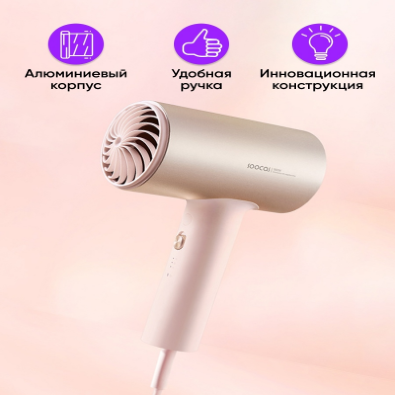 Фен Xiaomi удобен абсолютно во всём: он компактный, современный, крайне простой в управлении и сделан из качественных, надёжных материалов. Инженерам Xiaomi удалось улучшить конструкцию классического фена, сделав его эффективнее практически во всех направлениях. К главным достоинствам фена Xiaomi Soocas H5 можно отнести: низкий нагрев (алюминиевый корпус быстро отдаёт тепло, а пластиковая ручка создаёт дополнительную изоляцию);решётку, продуманная конструкция которой увеличивает мощность воздушного потока; мощность, составляющую 1800 ватт (при этом Soocas H5 - более эффективный фен, чем многие 2000-ваттные модели);приятный дизайн; лёгкость и небольшие размеры ;4 режима работы ;функция ионизации воздуха; прочный и толстый 1,7-метровый шнур, идущий в комплекте; насадка-концентратор для укладки. Фен для волос Soocas H5 может стать как прекрасным подарком, так и выгодным приобретением, ведь эта вещь будет служить вам долгие годы. Гарантированно купить оригинальный Soocas H5 вы можете именно у нас.